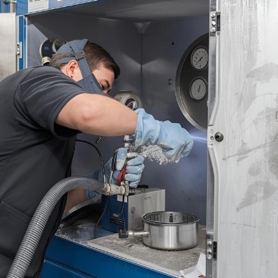 Die Auswahl des Strahlmittels und der Druck, mit dem es aufgebracht wird, sind entscheidend für das Endergebnis der behandelten Oberfläche.